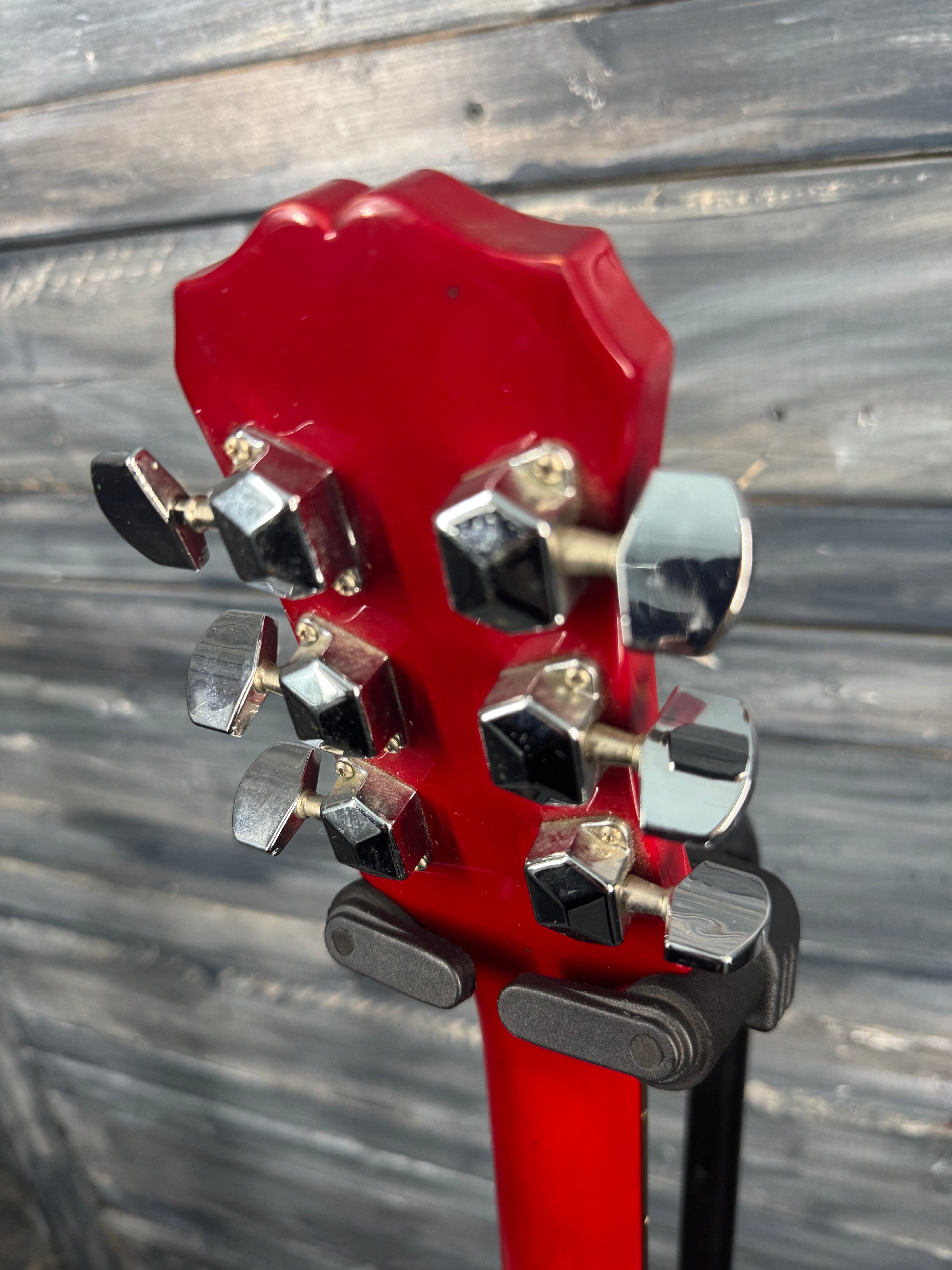 The most budget friendly way to get into an early 60's cut SG junior. The humbucker mod absolutely makes this a bonafide rock and roll machine. Has signs of wear notated in the photos.