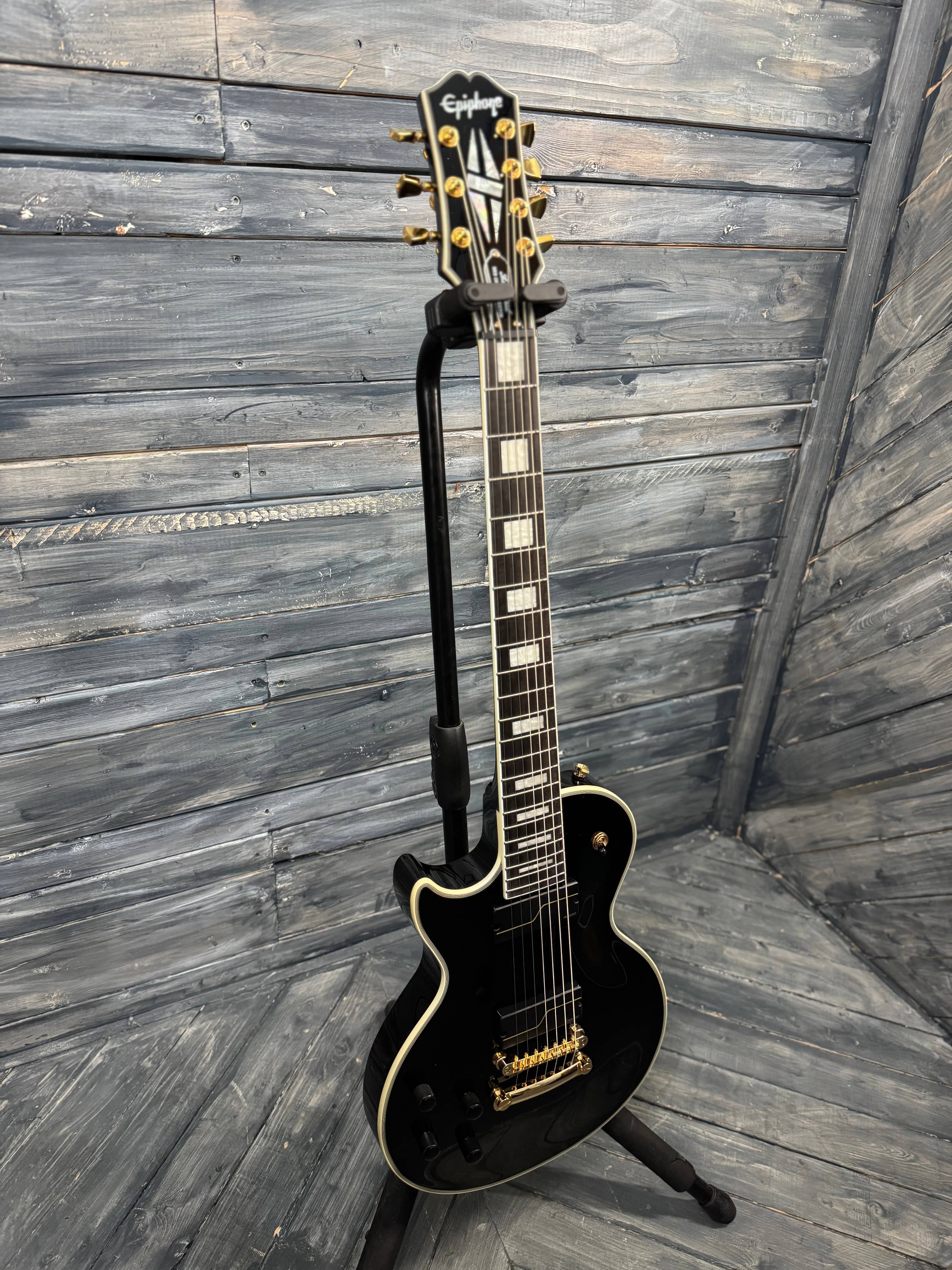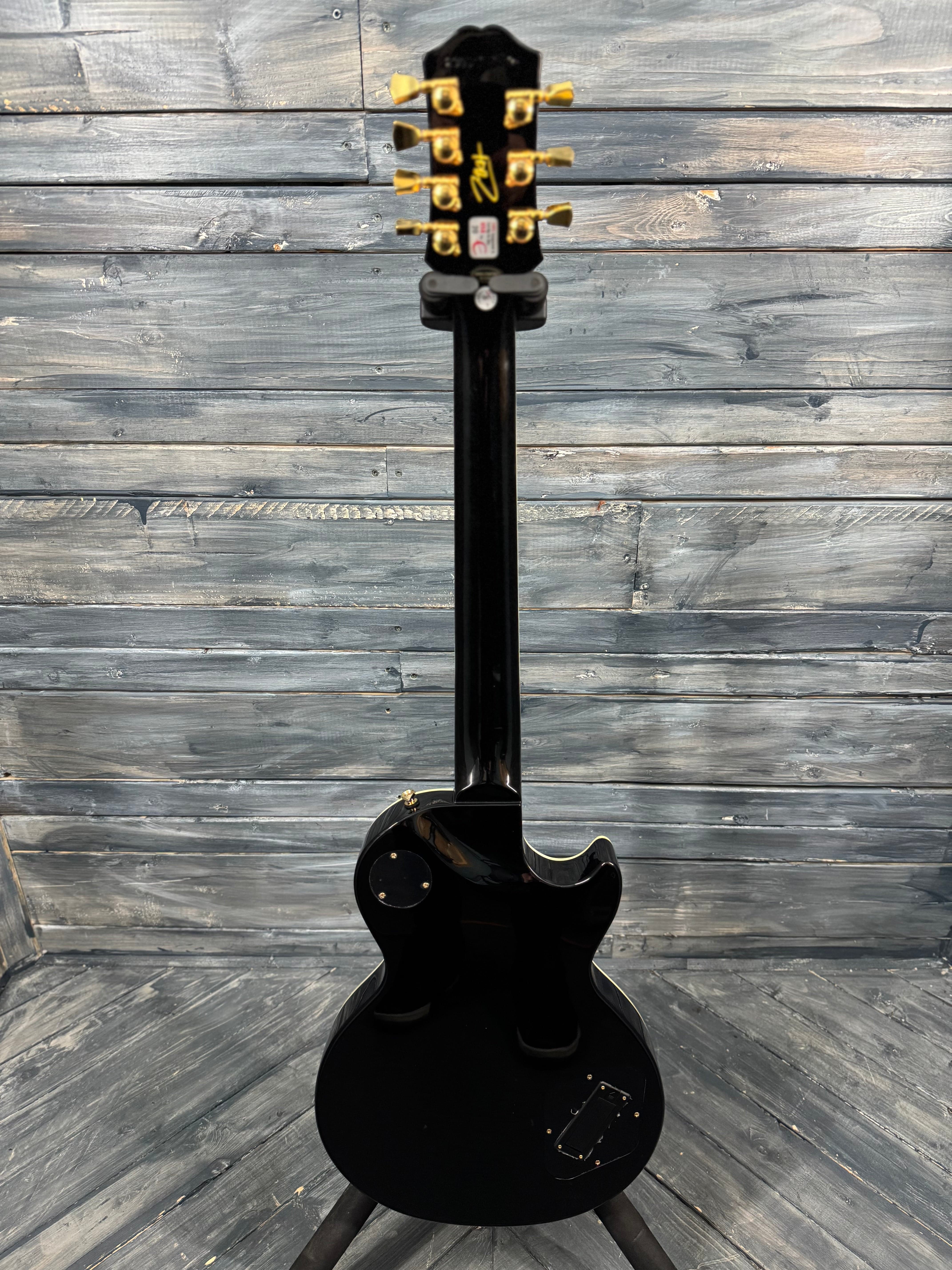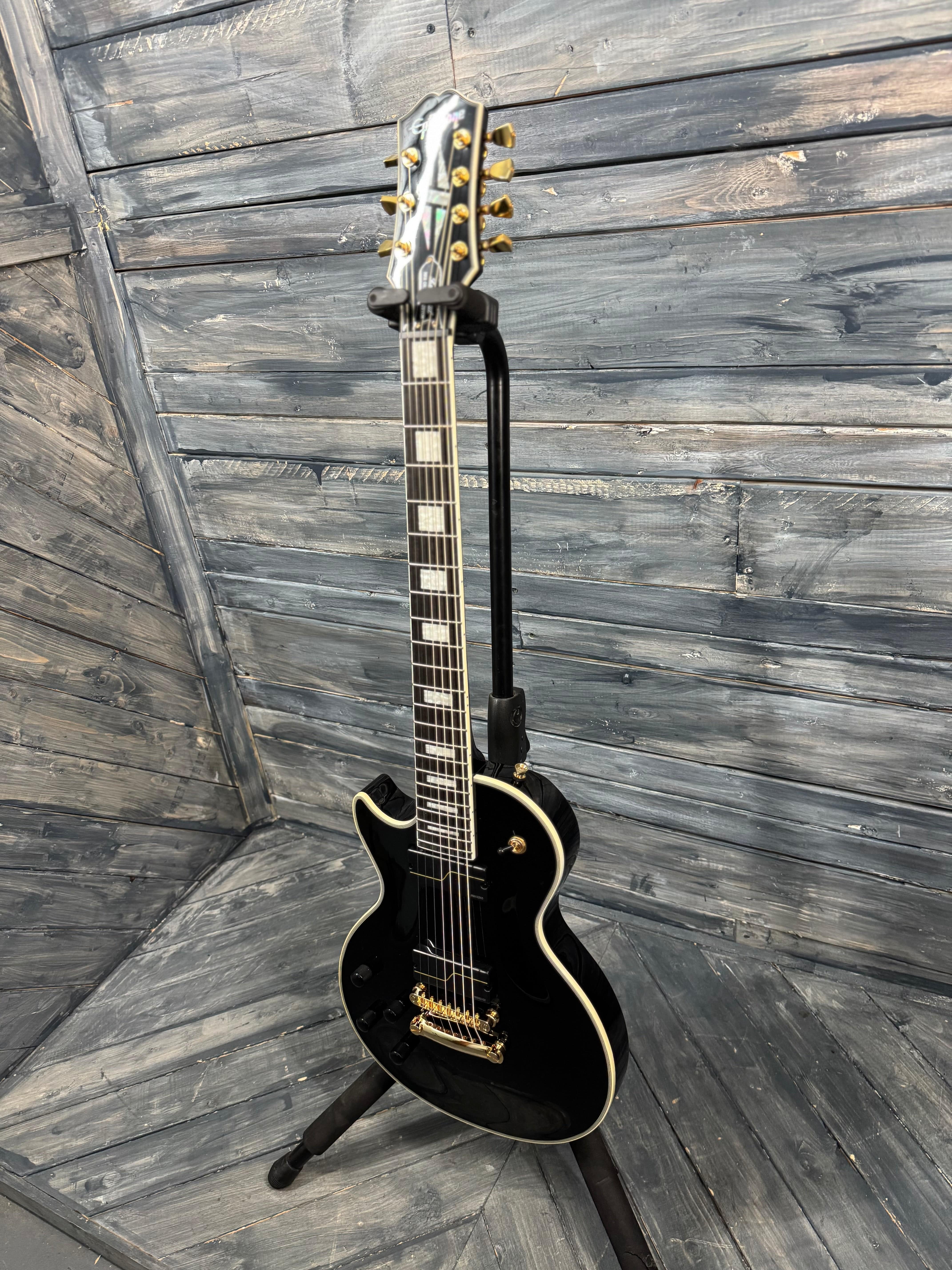 These are extremely cool and it's rare to see a left handed Epiphone 7 string. Being Matt Heafy's signature model, it's voiced for high output and totally rips. In near mint condition as notated in the photos. It comes with the original case and case candy.