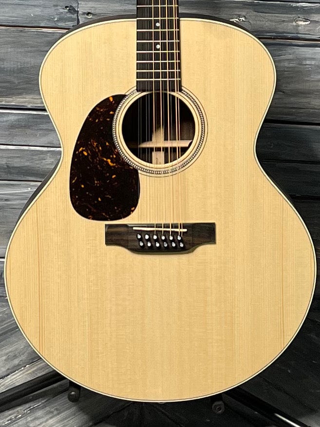 Ideal for experienced players looking to build on their skills, the Grand J-16E 12 String is a full-bodied, muscular guitar that generates well-balanced harmonics with a strong, solid low end. We craft it in Nazareth, Pennsylvania, with East Indian rosewood back and sides and a Sitka spruce top, so this powerhouse looks as good as it sounds. We also added scalloped X-bracing to create beautifully resonant tone that fills the room even when unplugged. And, while playing a 12 string can be challenging, our high-performance taper neck makes this one comfortable-playing, big-sounding guitar. Includes a matching Martin Gig Bag.