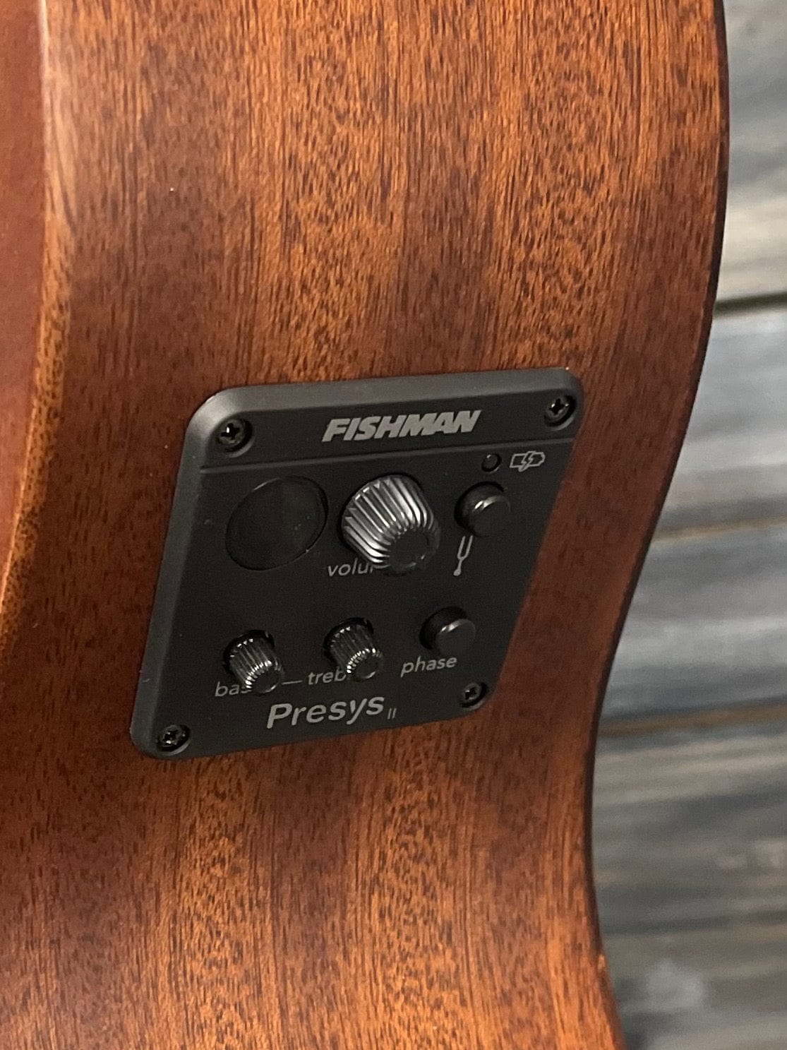 The hardware on the AMI-Guitars lefty 000MC-15L includes all bone saddle and nut and Grover diecast tuning machines for stable tuning and rock solid intonation. The electronics includes a Fishman Isys+ preamp with chromatic tuner, featuring Volume, Tone shaping, and Phase controls and a Fishman Sonicore pickup with low profile control knobs, delivering a natural acoustic sound.