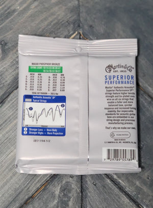 Martin® Authentic Acoustic® Superior Performance SP® strings feature higher tensile strength and tin-plated core wire on all six strings that enable a fuller and more balanced tone, quicker response and increased tuning stability. Our impeccable standards for acoustic guitar tone are embedded in our string design and precision manufacturing process.