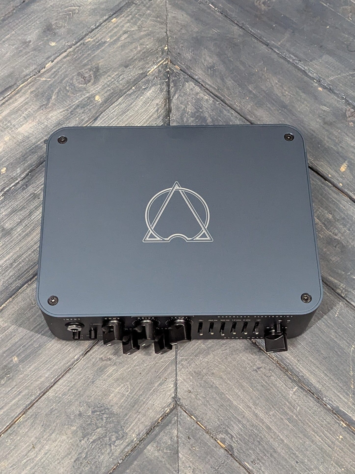 The Alpha·Omega 500 is a 500W amplifier equipped with an all-analog preamplifier, two distinct distortion circuits (Alpha and Omega), a custom-designed Darkglass high-efficiency class D Module, an ultra-quiet graphic equalizer, and a digital impulse-response cabinet emulator for DI outputs or headphones.