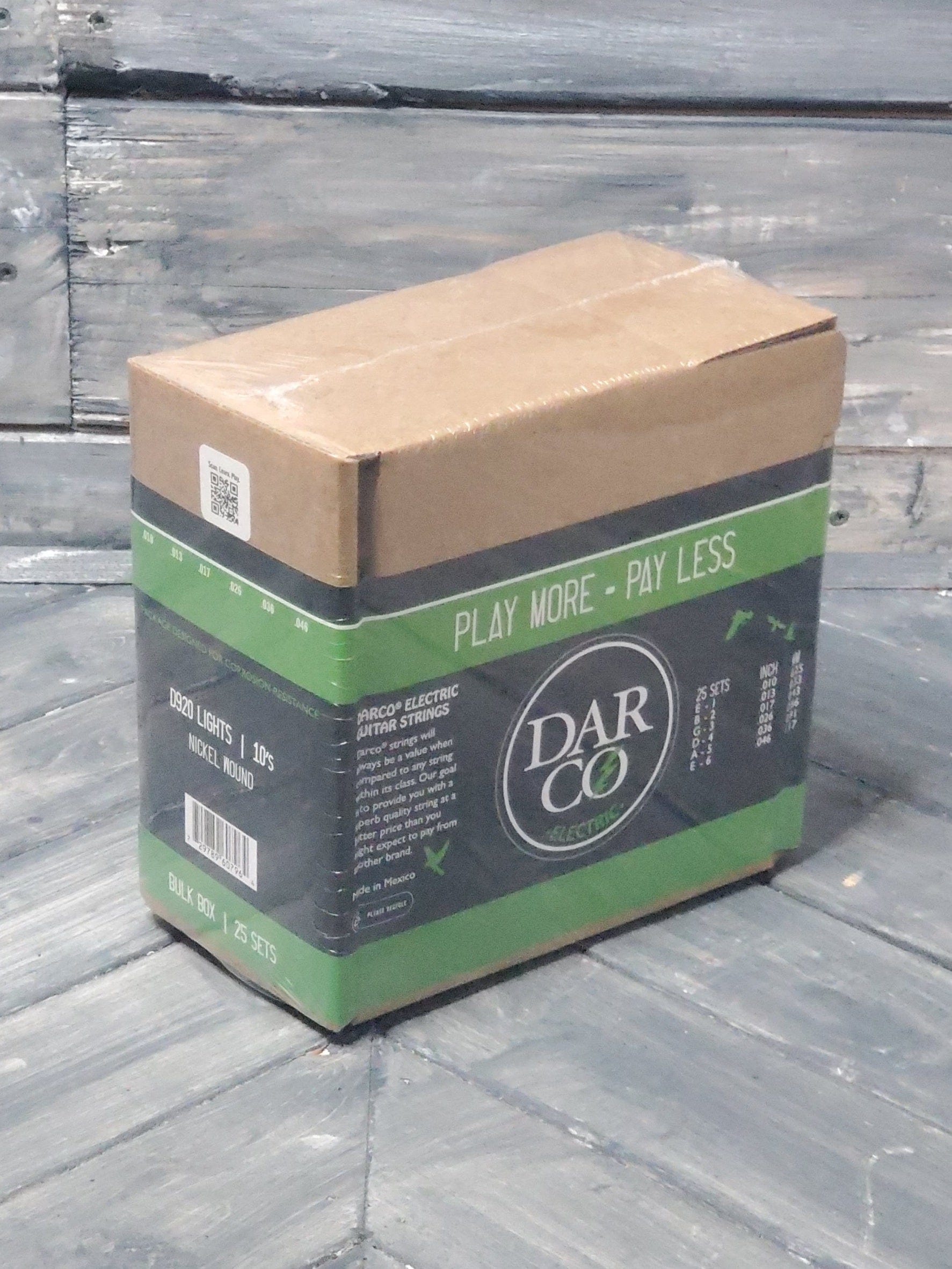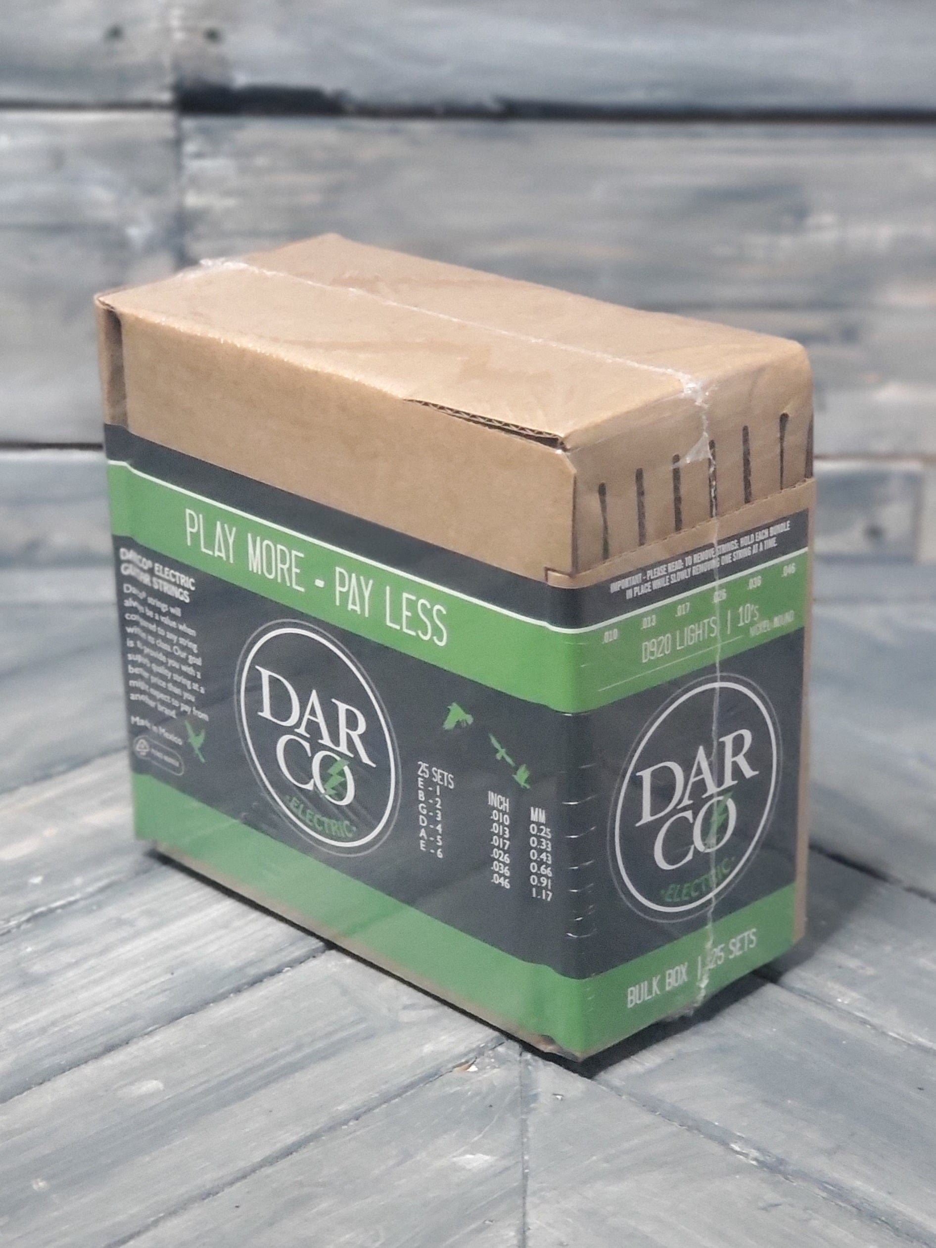 • ELECTRIC GUITAR STRING SET: Darco Electric Guitar Strings are now offered in a box of 25 sets that are packaged in an easy-to-use system and designed for corrosion resistance. Choose between a light and an extra light gauge, and you’ll be ready to rock.