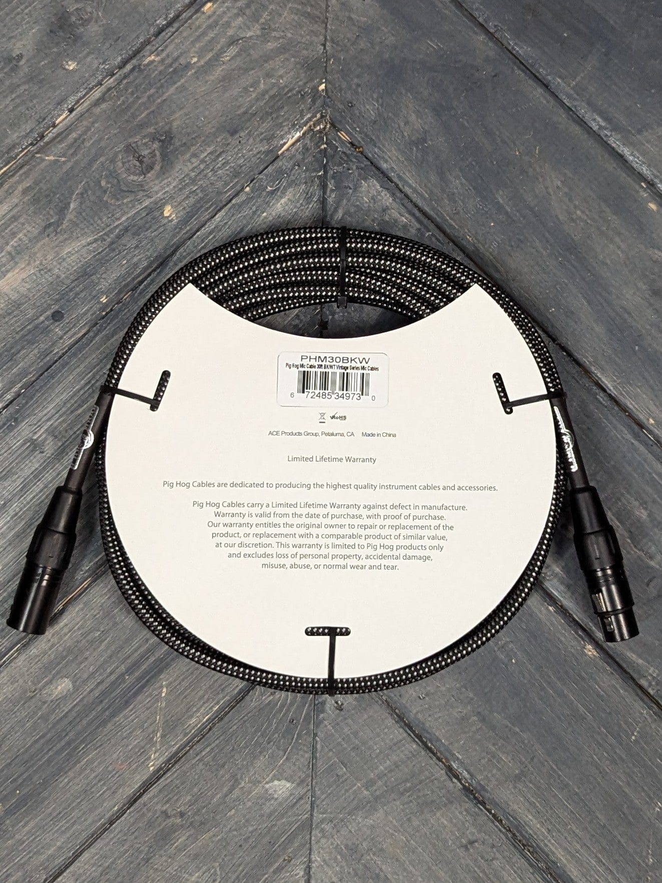Pig Hog PHM30BKW Black & White Woven Mic Cable, 30ft XLR