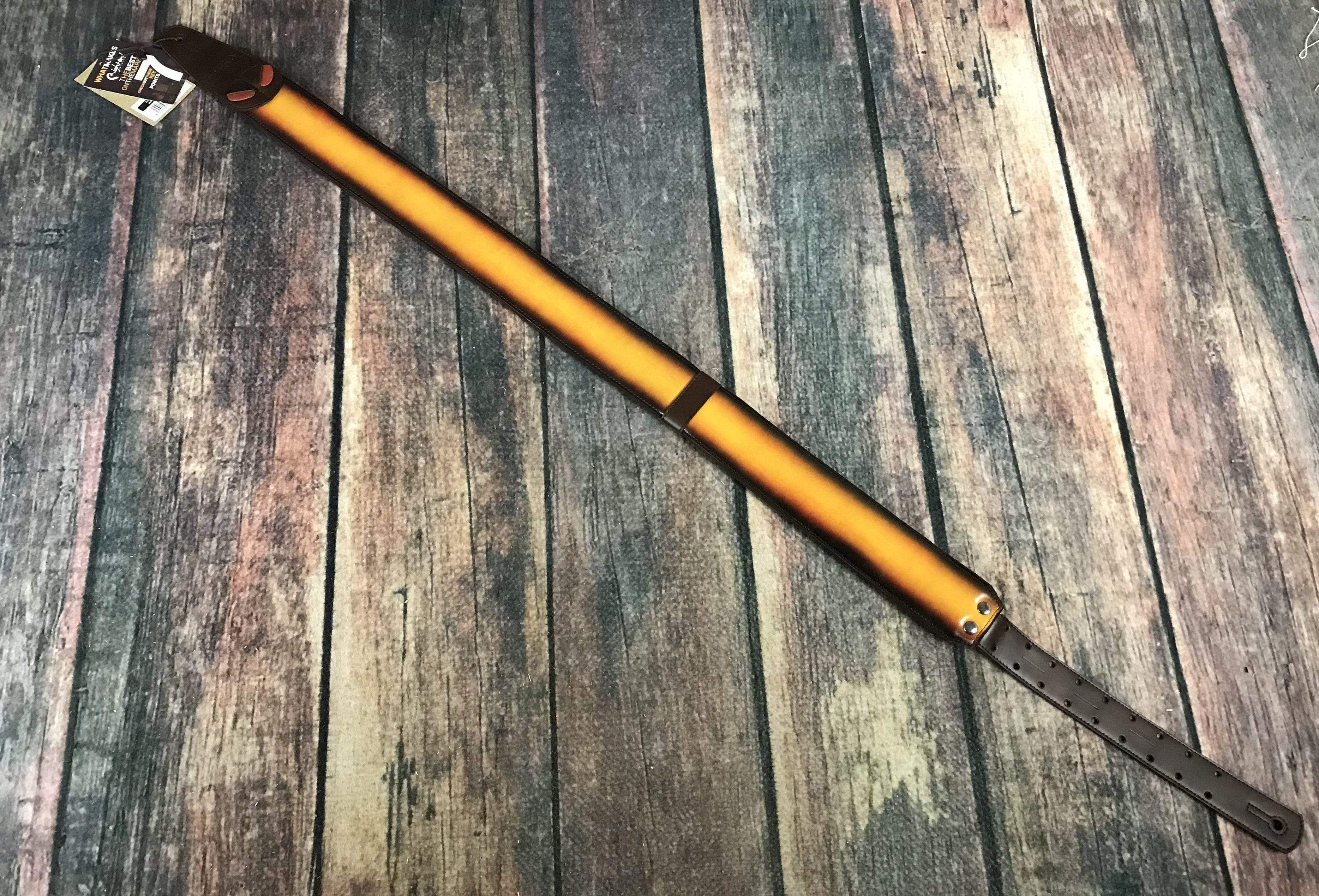 The RightOn! Mojo Collection is made from vegan leather and made free of all animal parts, with microfiber lining and high-density latex padding. This awesome RightOn! strap has pick holders right on board, to make sure you have a couple of extra picks handy just in case. Stylish design. The Mojo collection has stylish look and they are built to last and to make playing your instrument as comfortable as possible. This Mojo strap has is Sunburst and is available in many other colors.